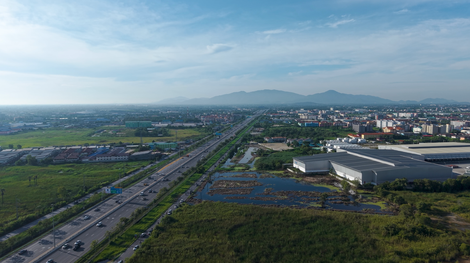 Approximately 5 minutes from Amata Nakorn Industrial Estate, or 2 kilometers.